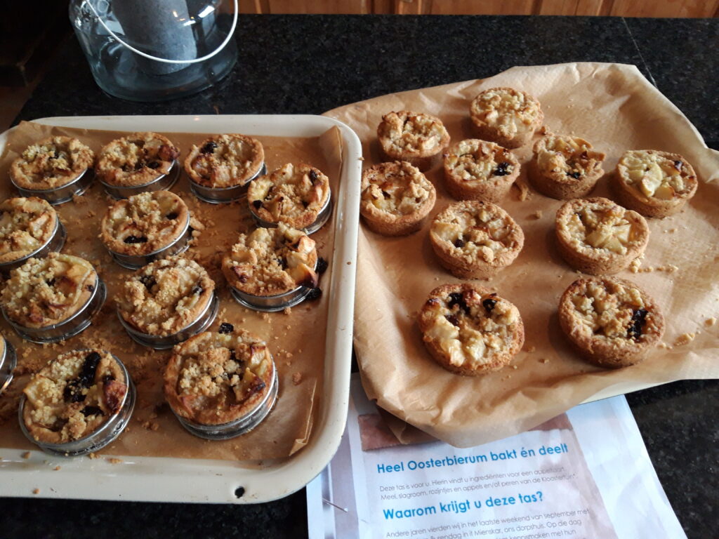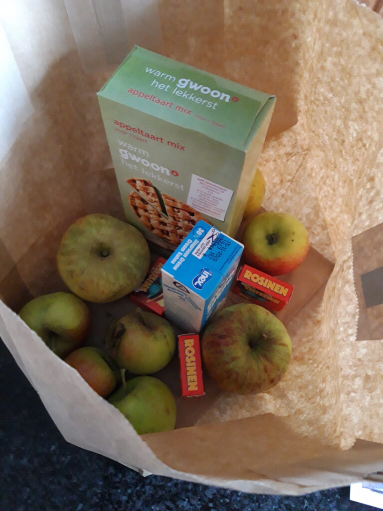 Toch wilden ze wel op een of andere manier iets aan burendag gaan doen. Ze hebben de appeltjes uit de Kloostertuin geplukt en voor iedereen een tasje gemaakt met appeltaartenmix erin. Zo kon je dan toch iets bakken en delen met je buren.
