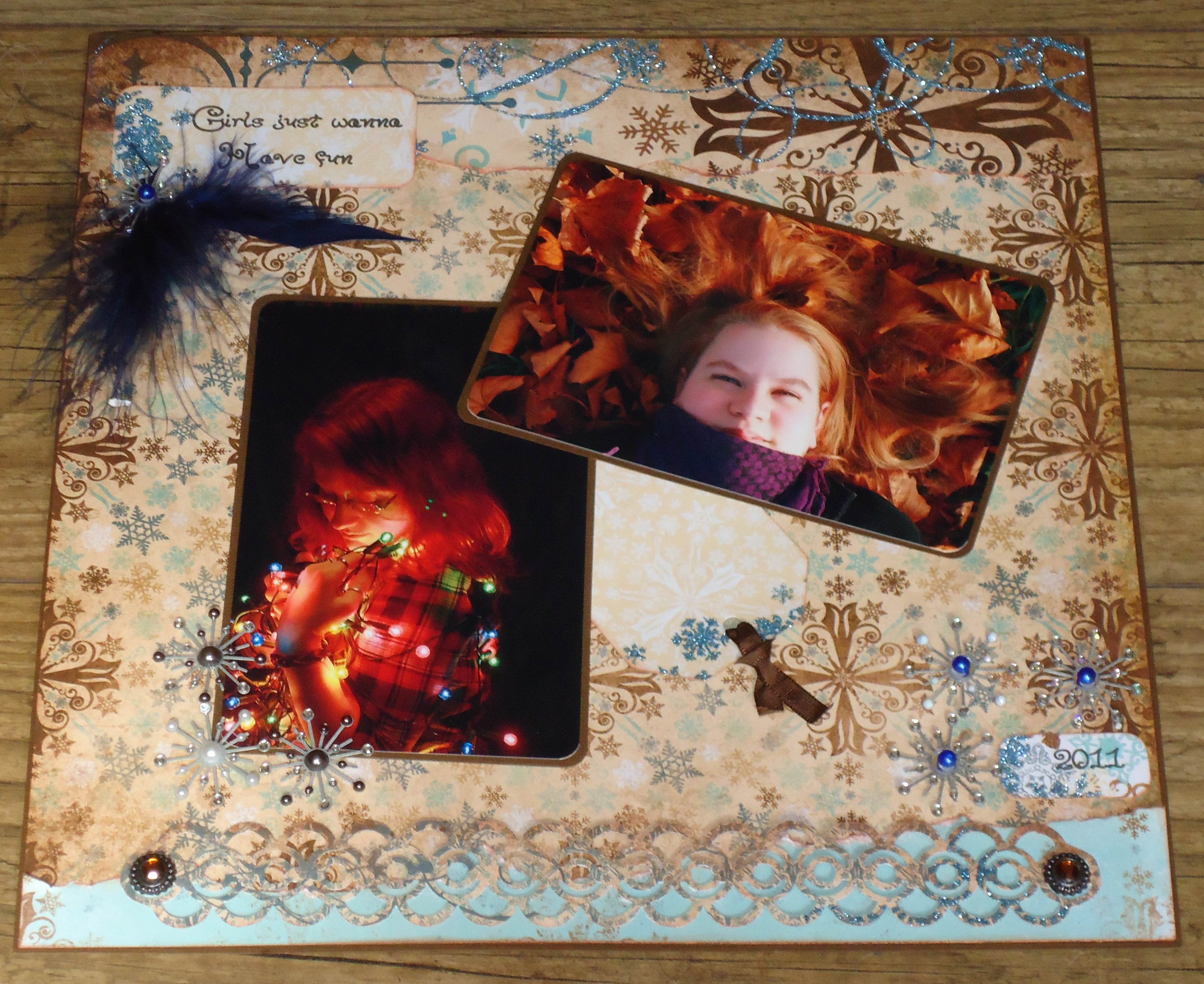 Dit keer heb ik foto’s gebruikt van mijn dochters, omdat ik ze goed bij het papier vind passen. Ik vind het erg belangrijk dat papier en foto’s goed bij elkaar passen. Meestal begin ik met een foto en zoek dan het passende papier erbij. Soms werk ik ook andersom en dan wil ik speciaal met bepaald papier werken. Ik vind het gewoon belangrijk dat alles in balans is met foto, papier, lay-out, etc.