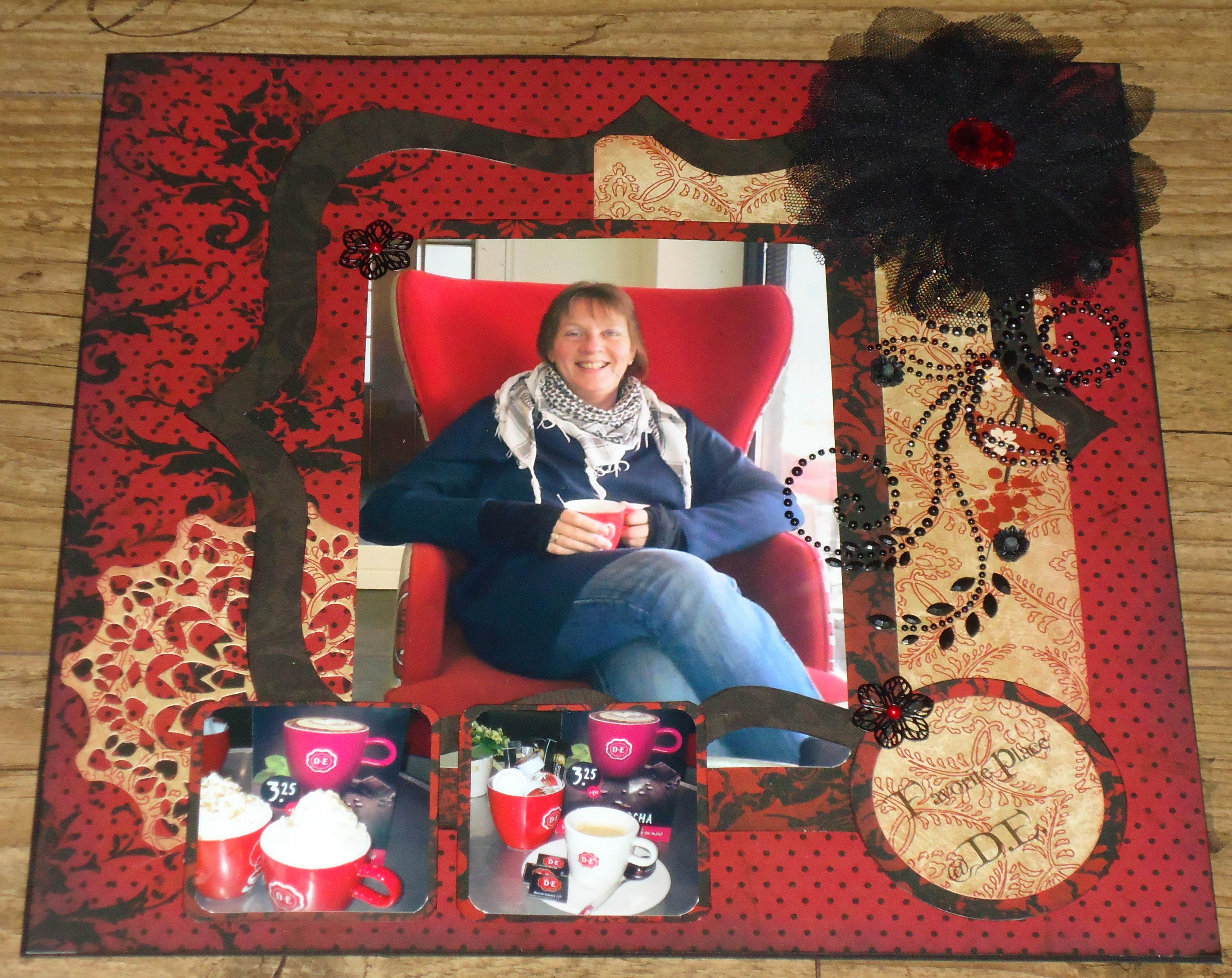 Mijn favoriete plaats om het begin van het weekend te vieren is tegenwoordig bij het Douwe Egberts café in ,mijn woonplaats. Dat is een echt verwennerij met eerlijke koffie. Dus ja, dan moet er wel een scrap over komen aangezien het alles met mij te maken heeft.