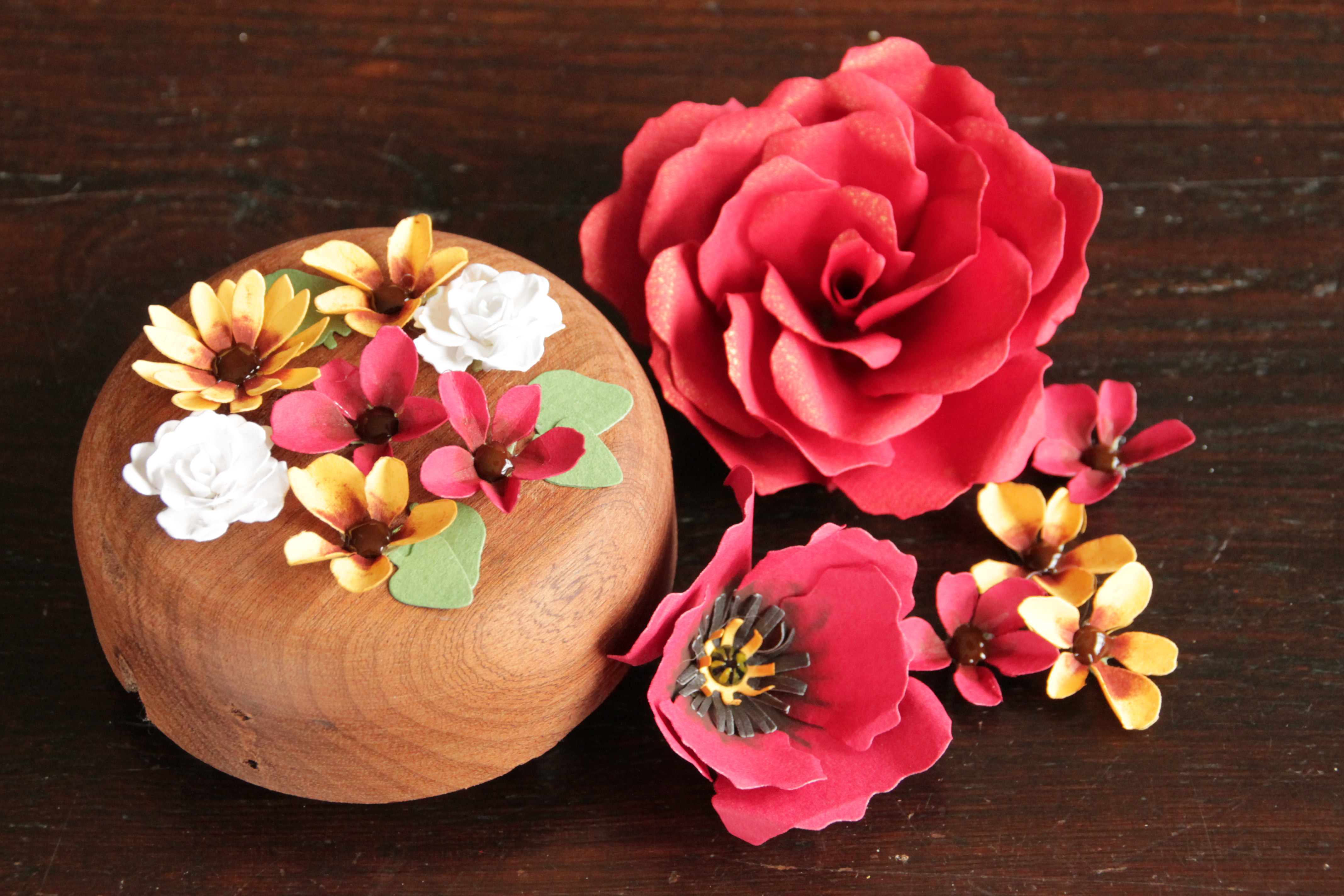 Materialen: Cardstock, rood papier, Sizzix Thinlits Die Set Flower Rose,