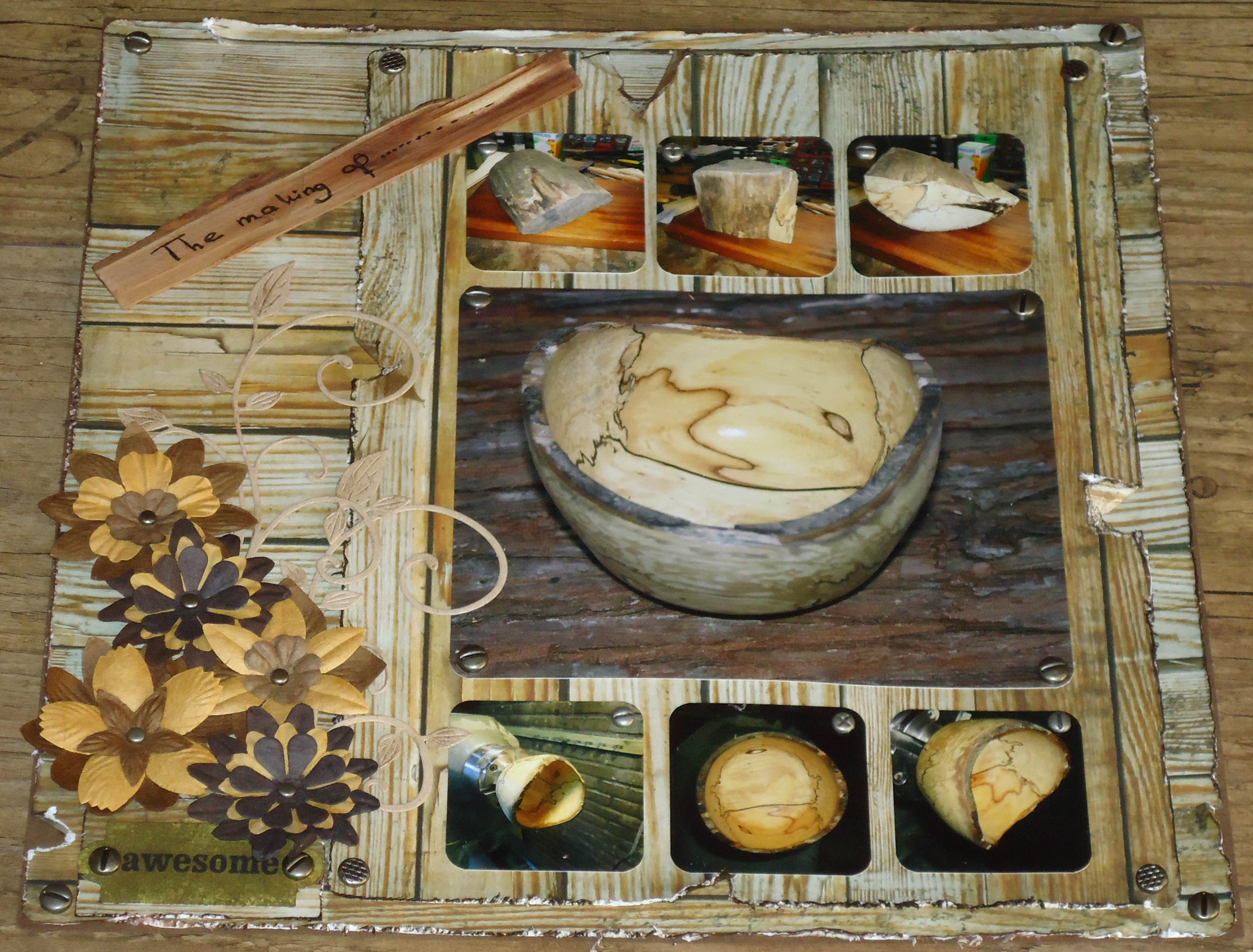 Ik heb het al eens eerder gezegd, mijn echtgenoot is een houtdraaier. Dat is zijn hobby en passie. Ik maakt scraps over allerlei onderwerpen, zoals mijn kinderen, plaatsen waar ik ben geweest of mooie dingen. De meeste bewaar ik in boeken, maar ik maak ze ook wel op canvas voor aan de muur.