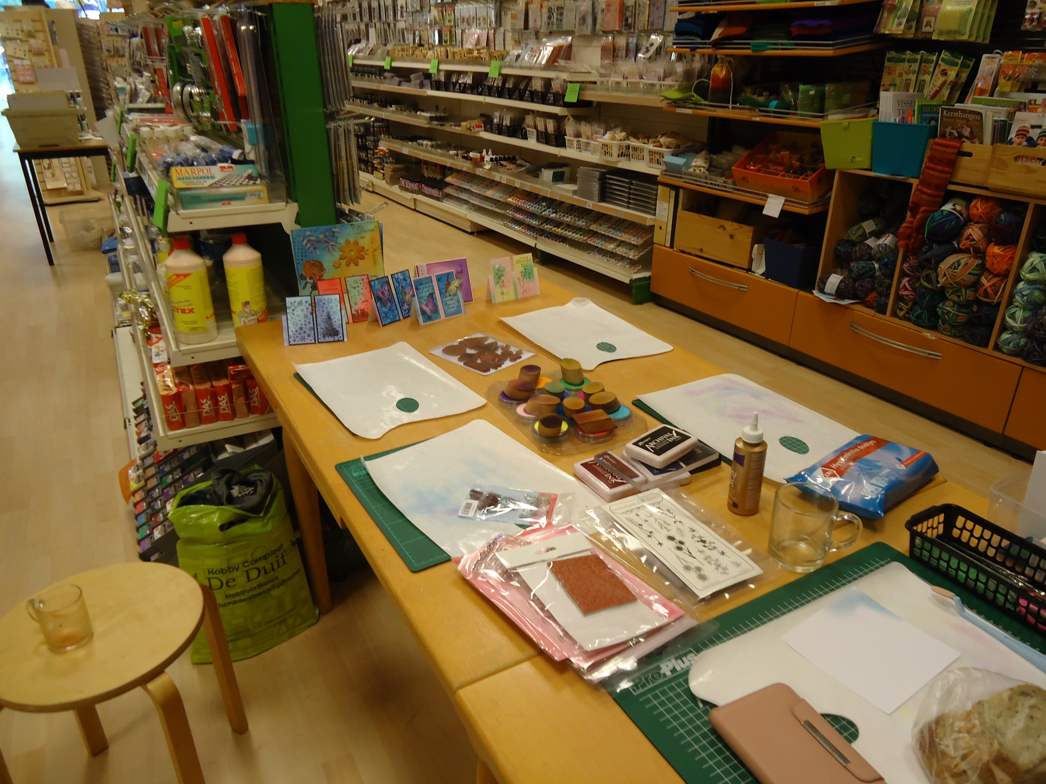 Ik heb al een paar jaar diverse opdrachten gehad voor onze hobby winkel in de stad, de Duif. Mijn layouts blijven daar gedurende een lange tijd hangen zodat iedereen kan zien wat je ook met al dat mooie papier kan doen.