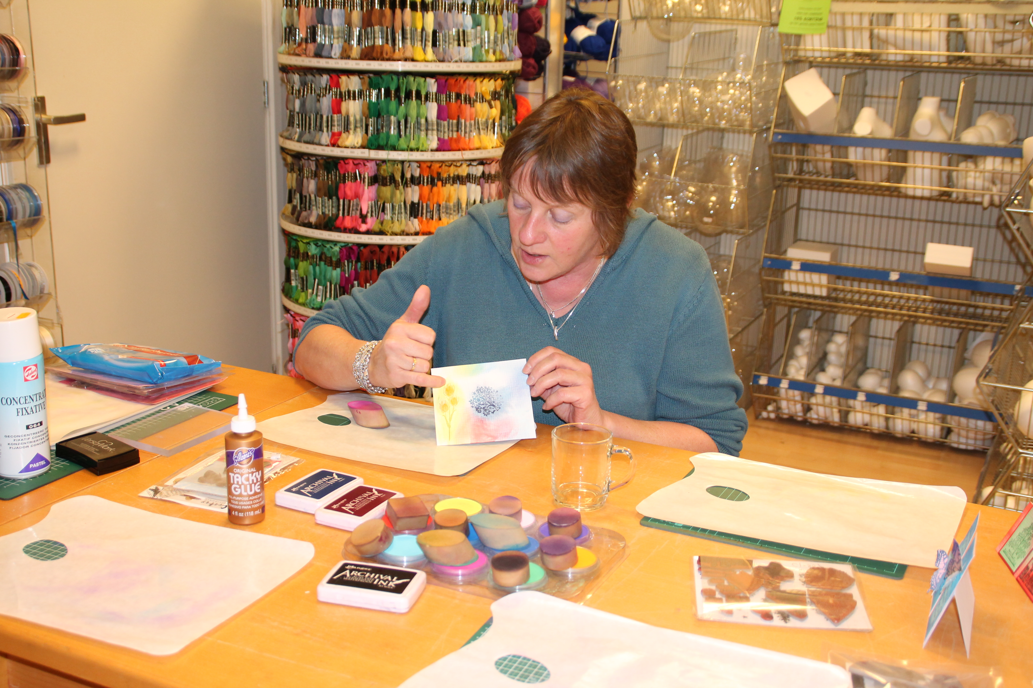 Afgelopen vrijdagmiddag heb ik een Make & Take gedaan bij Hobbycompleet de Duif. Ik ben niet aangeschoven om iets te leren maar ik heb een ieder die wilde aanschuiven laten zien hoe je eenvoudige kaarten kan maken met Pan Pastels.